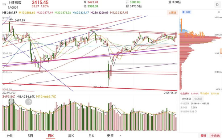 根据技术分析与市场规律,上方首GE重要压力位(压力线)大致在3600点附近。需要强调的是,这并不意味着行情将止步于3600点,而是当指数运行至该区域时,我将进行进一步的观察与研判。