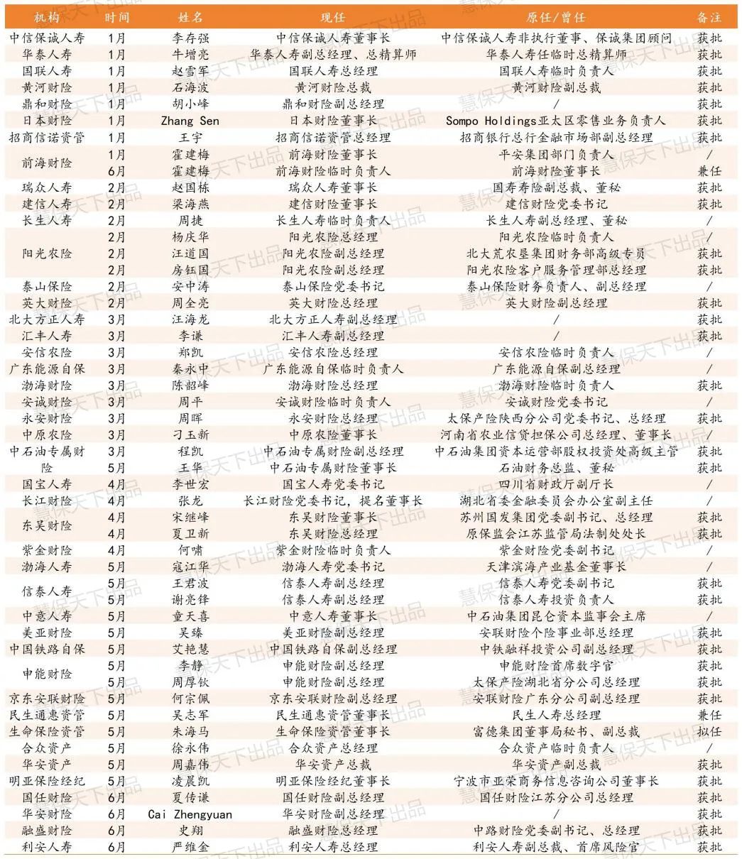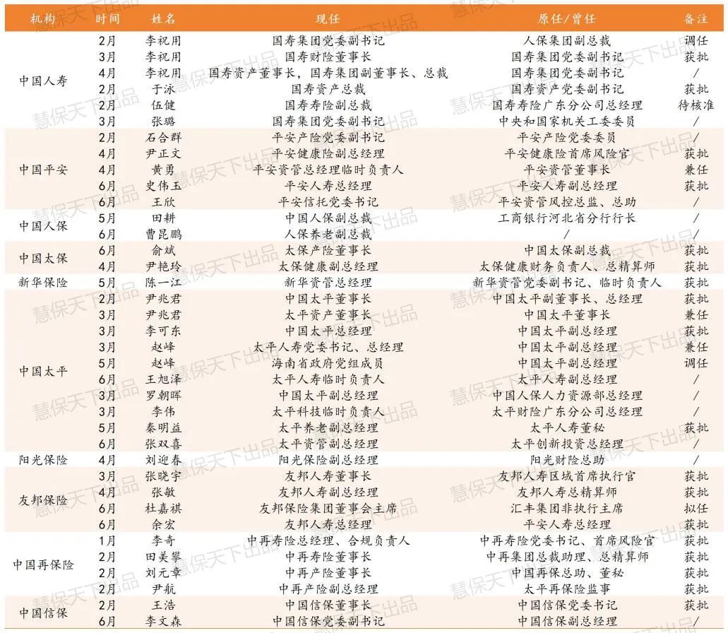 其中既有头部机构的频繁“换帅”,太平系出现10起高管变动,平安、友邦、国寿亦有“一二把手”履新,也有中小险企股东更替下,中高管理层的“大换血”,亦有伴随问题险企的退出与承接,带来新一轮的高管补位。