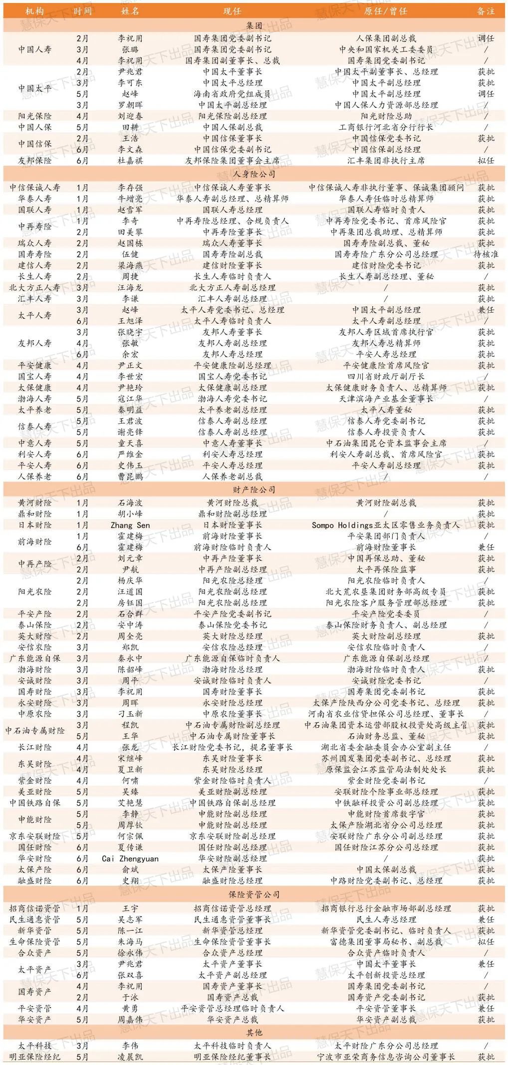 相比之下,中国人保、中国太保、新华保险、阳光保险、中国信保等几家大型保险集团在人事层面上半年变动相对有限,仅有个别岗位调整。